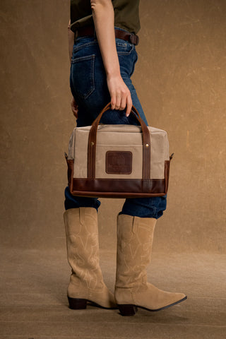 Briefbag, ayarlanabilir kumaş askısıyla omuzda taşıma kolaylığı sunar. Gerçek deri elde taşıma sapları ise klasik bir kullanım isteyenlere konfor sağlar. Çantayı ister elde ister omuzda taşı, her şekilde sana uyum sağlar.
