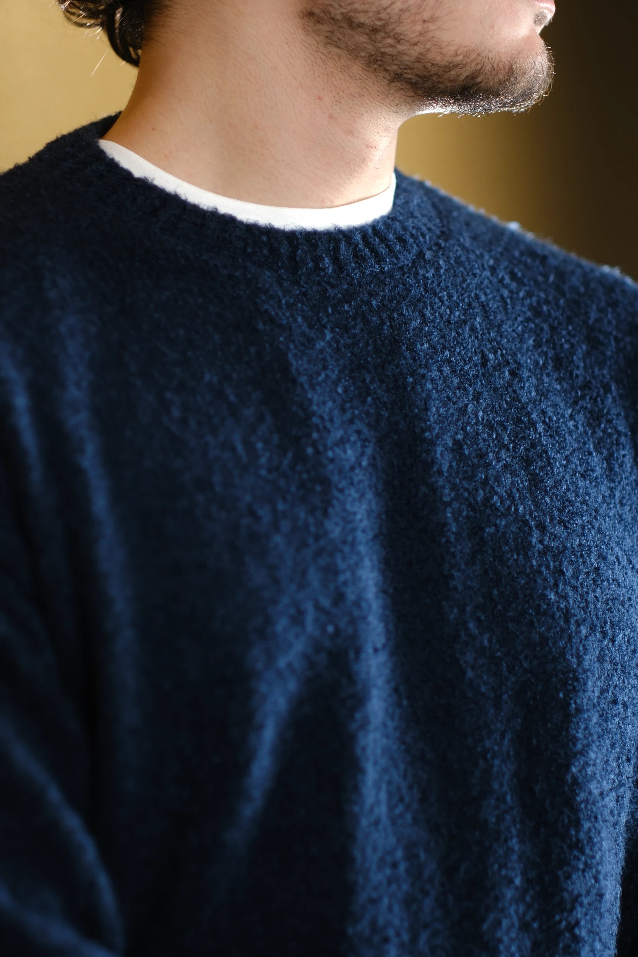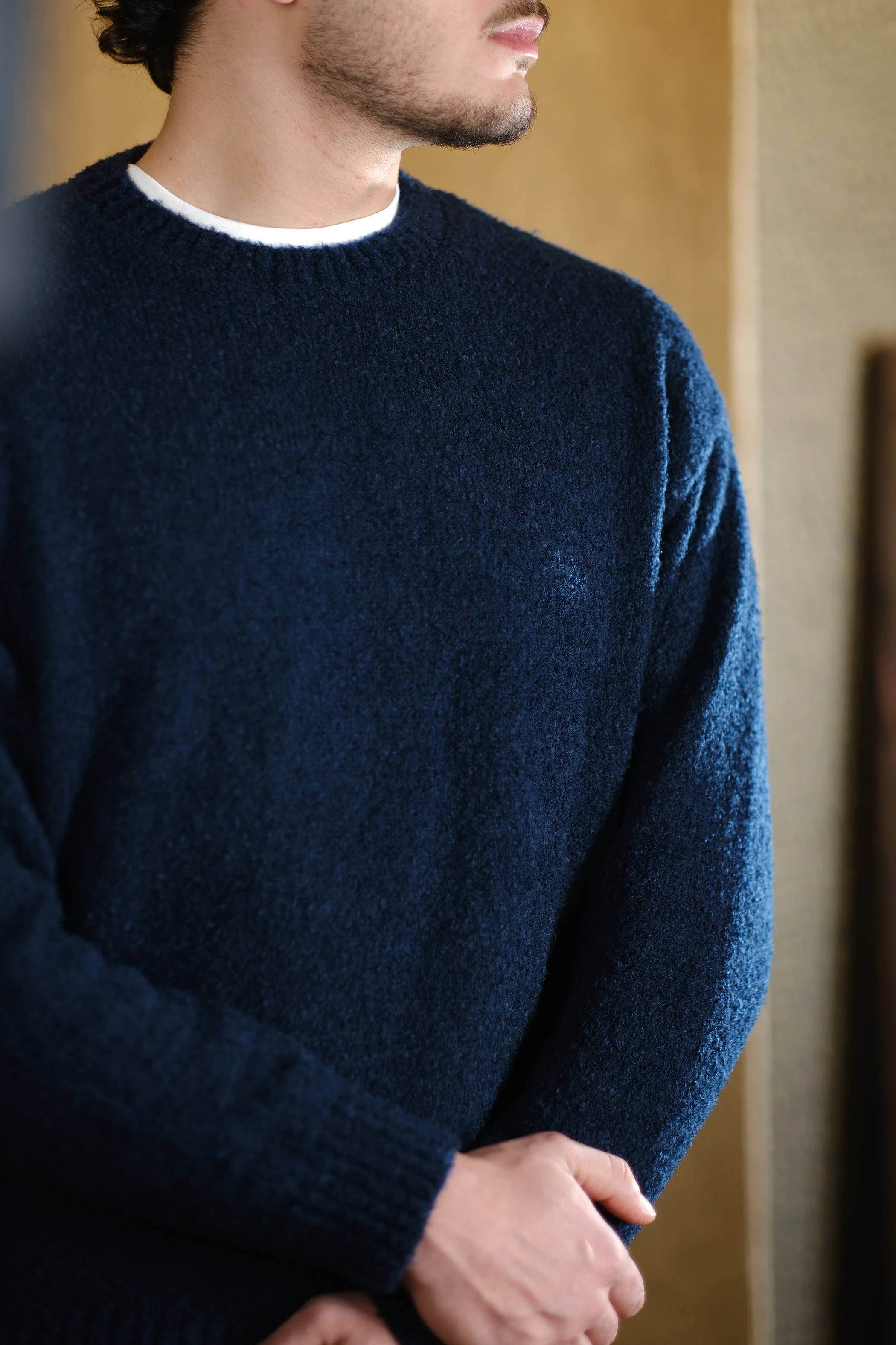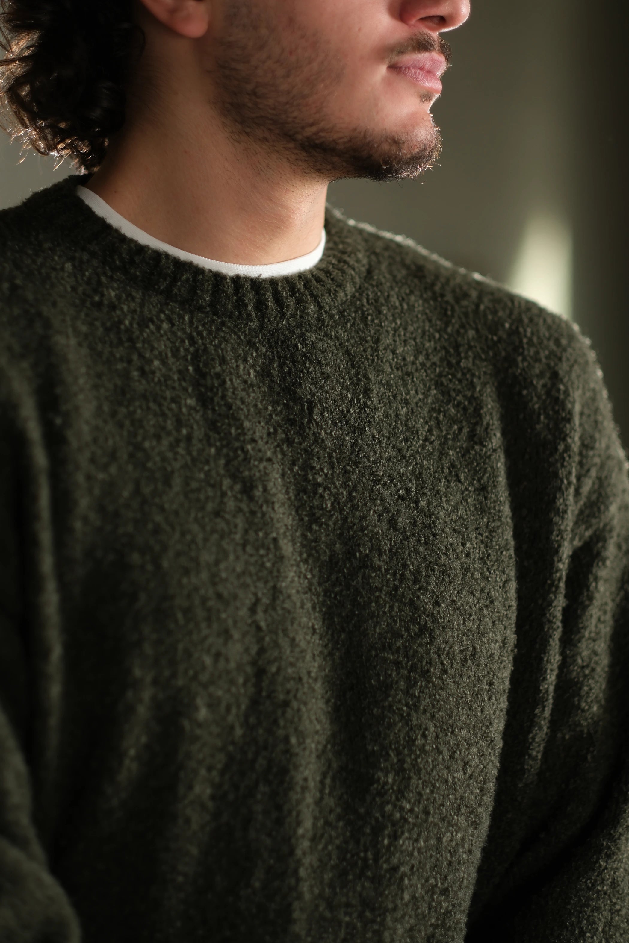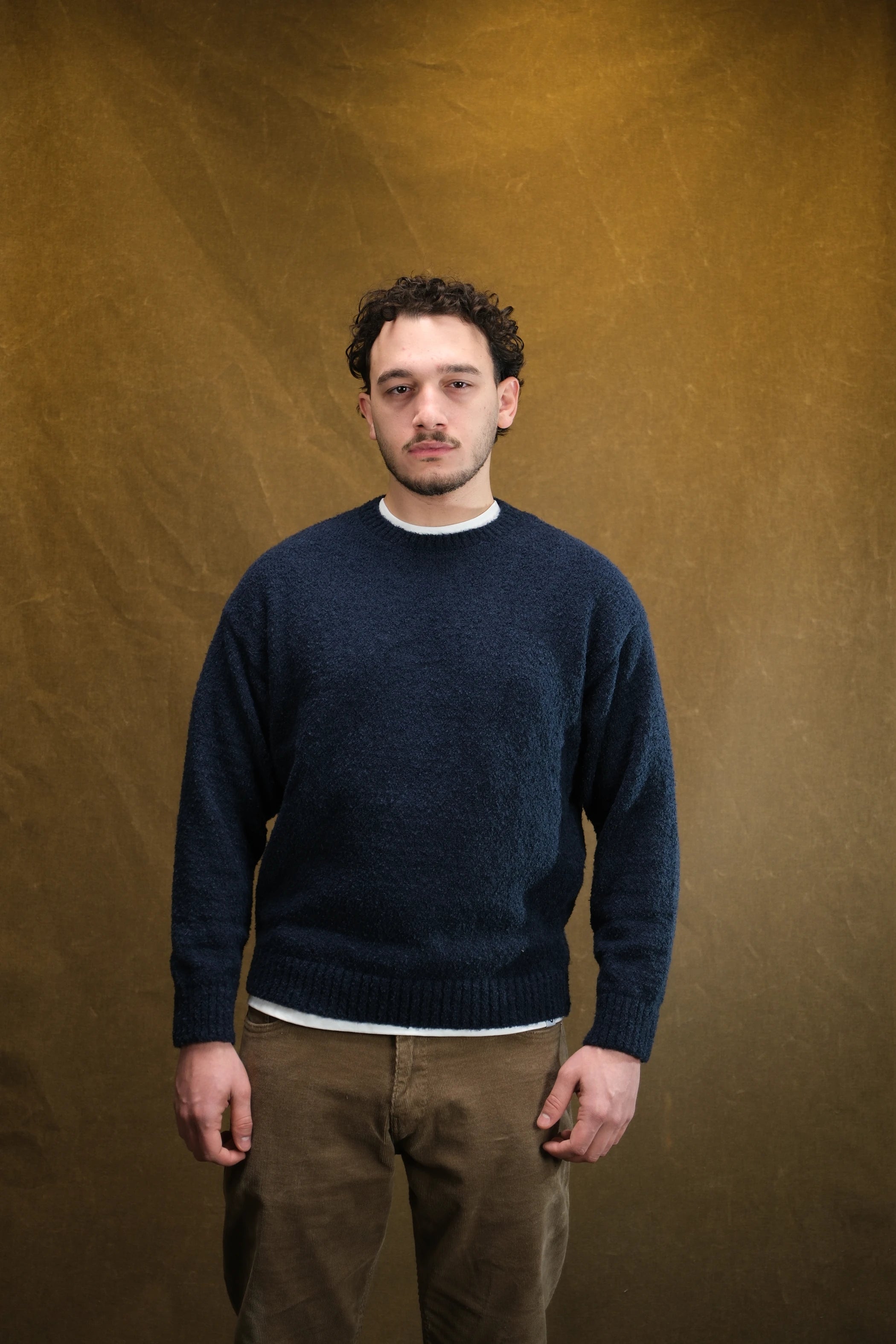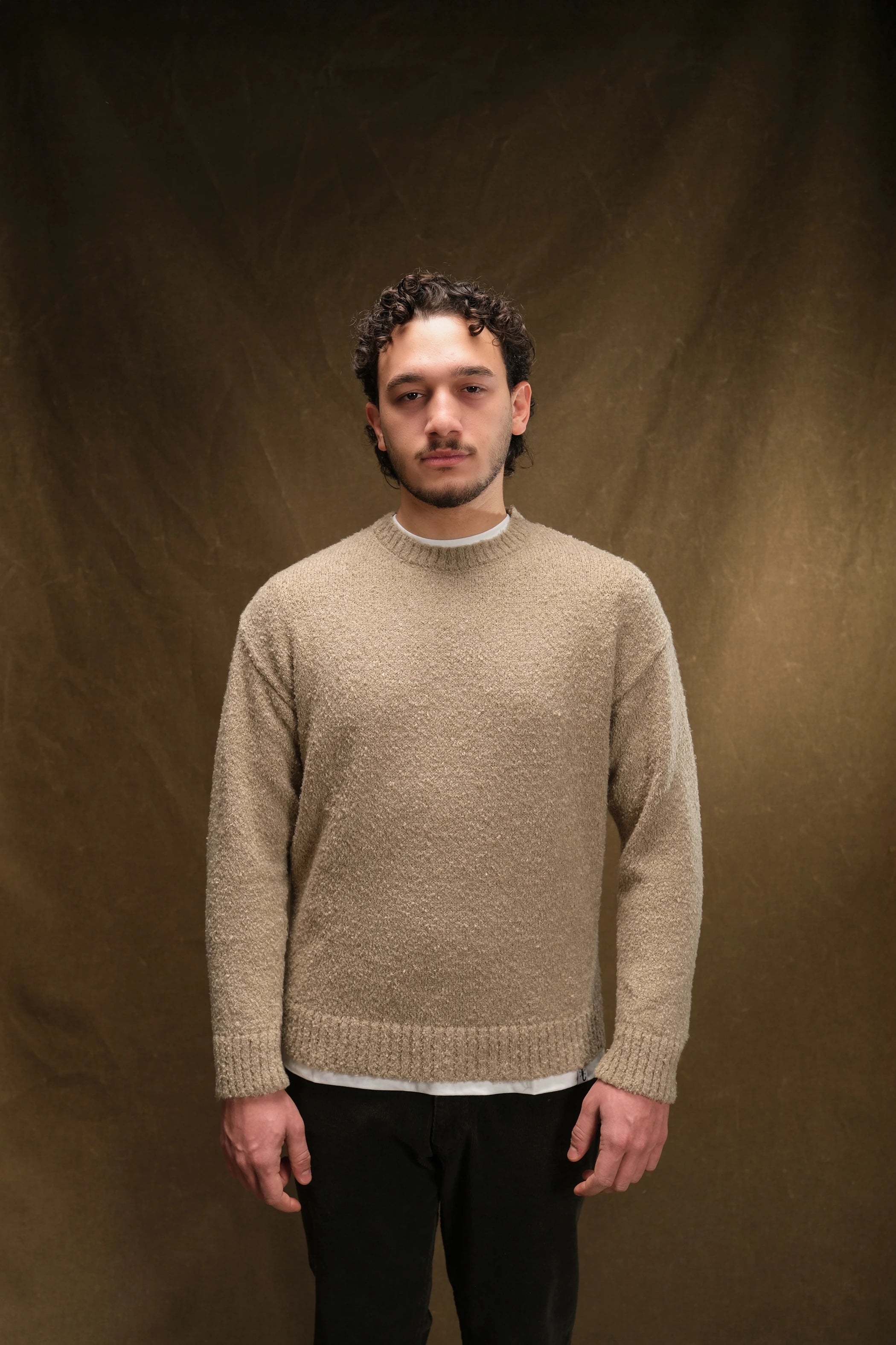 Kendine has kıvırcık iplik yapısı, kazağa boyut ve hareket katar. Düz erkek kazak modelleri arasından sıyrılarak, kombininize "vintage" ve zengin bir hava verir.