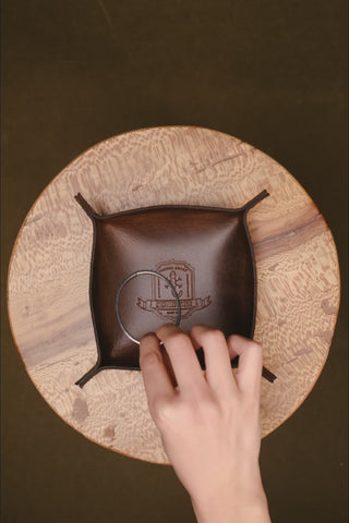 Bu deri sunum kabı, evde veya iş yerinde her türlü dekorla uyum sağlayacak zarif bir tasarıma sahiptir. Minimalist ve çok yönlü tasarımı ile hem fonksiyonel hem de şık bir aksesuardır.