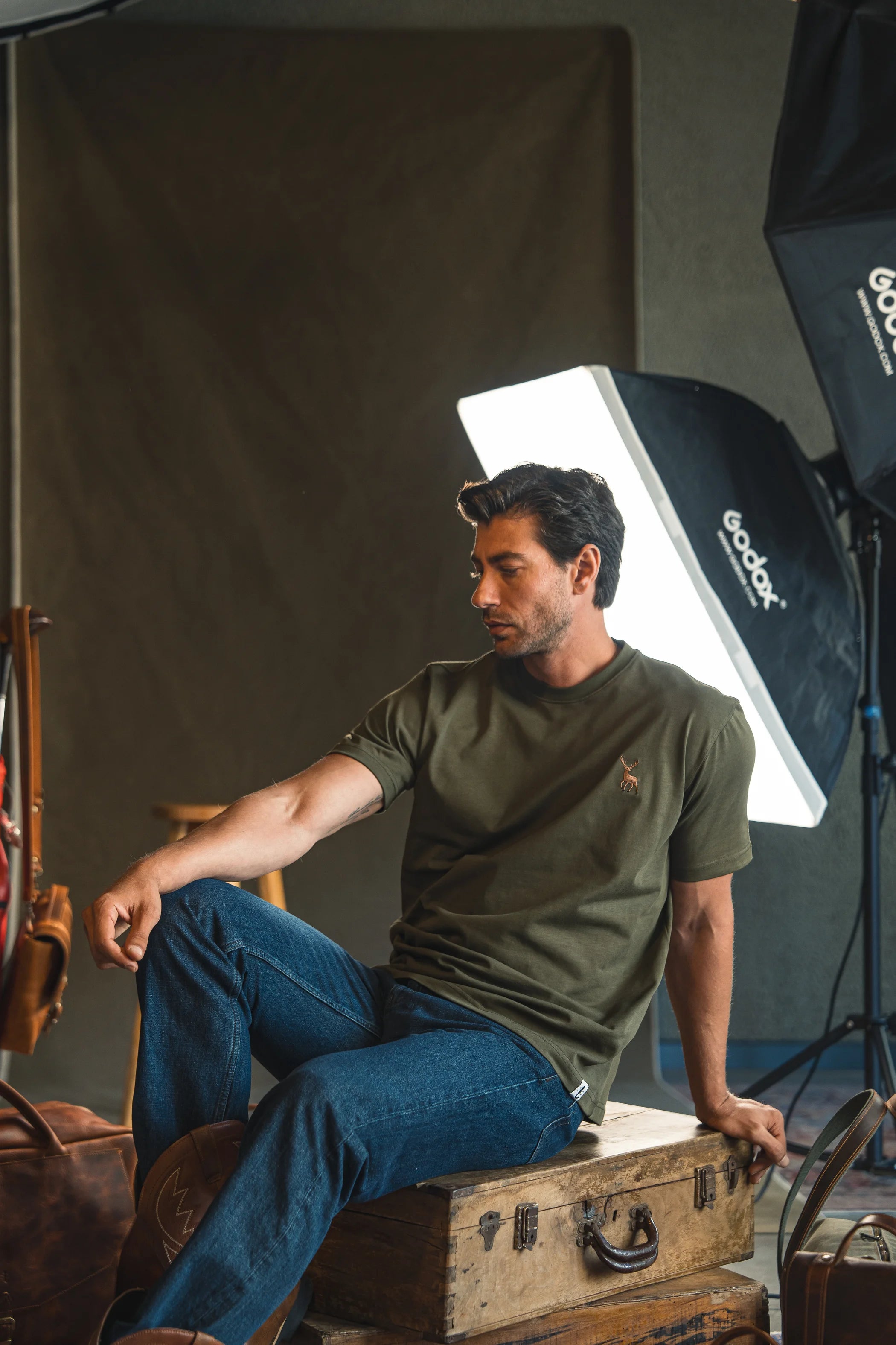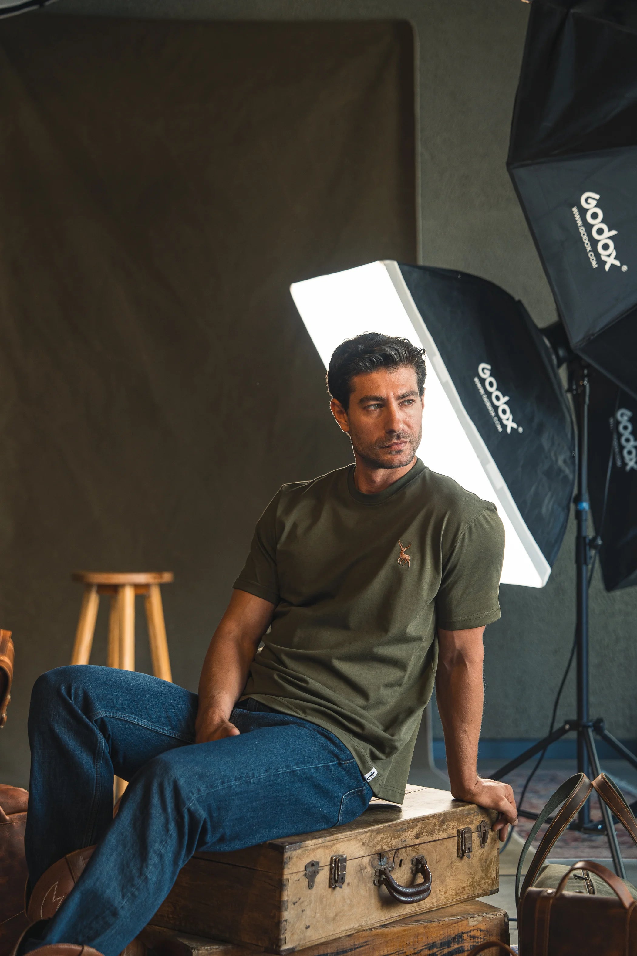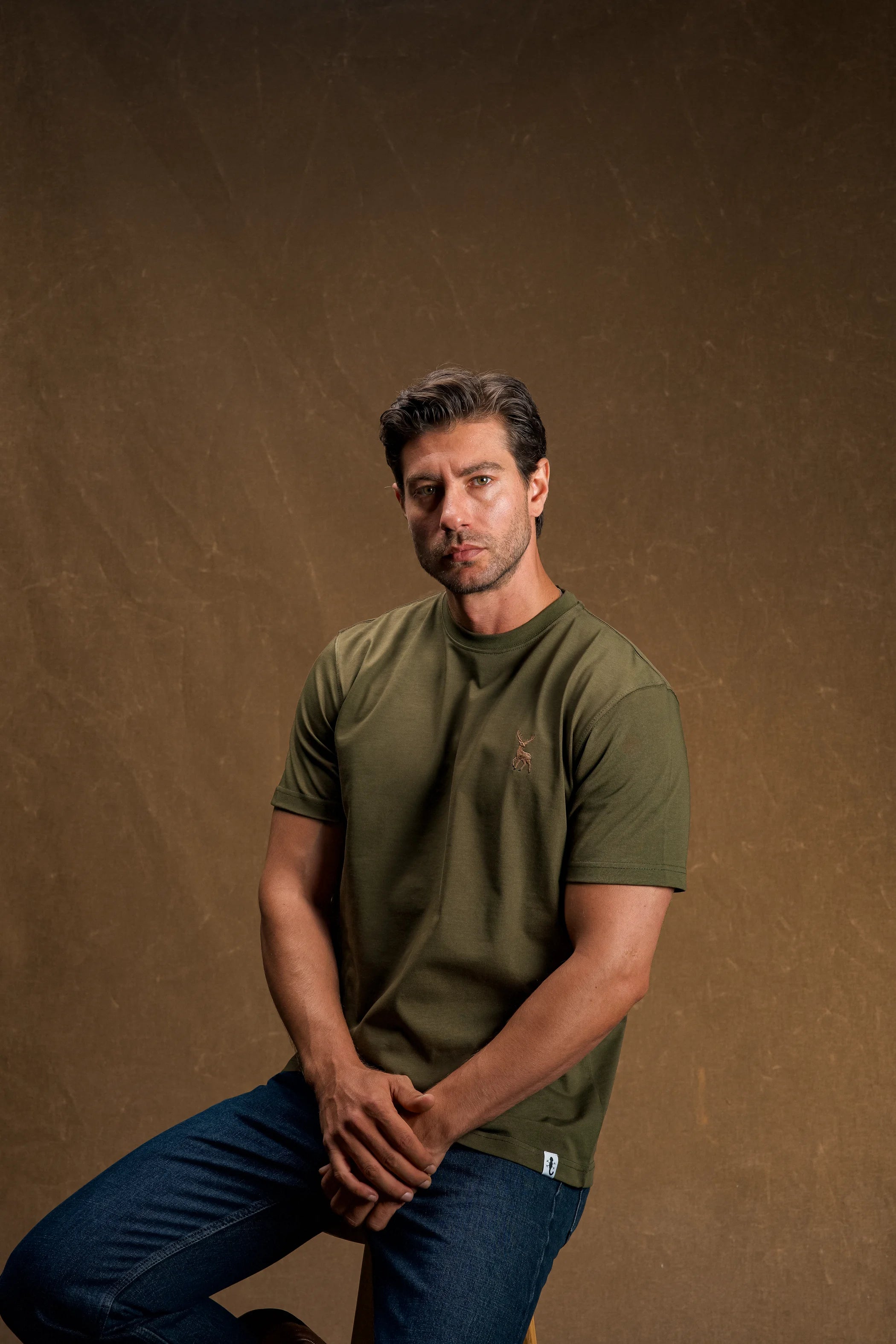 Geyik Nakışlı Haki Yeşil T-Shirt