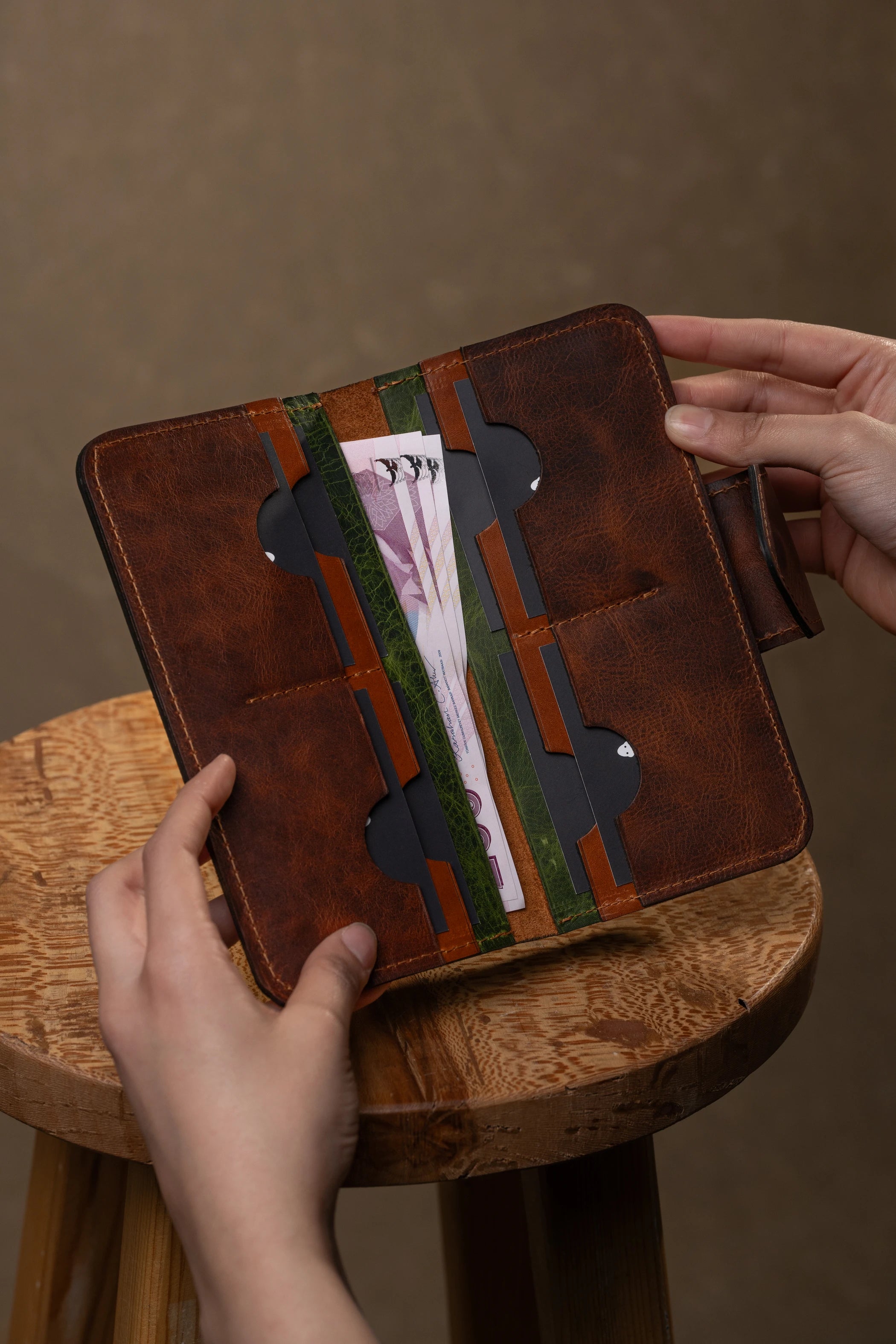 İliada, 8 kart cebi ve 1 nakit cebi ile tüm kartlarını ve paranı düzenli bir şekilde taşımanı sağlar. Çok gözlü tasarımı sayesinde eşyalarını güvenle organize edebilirsin.