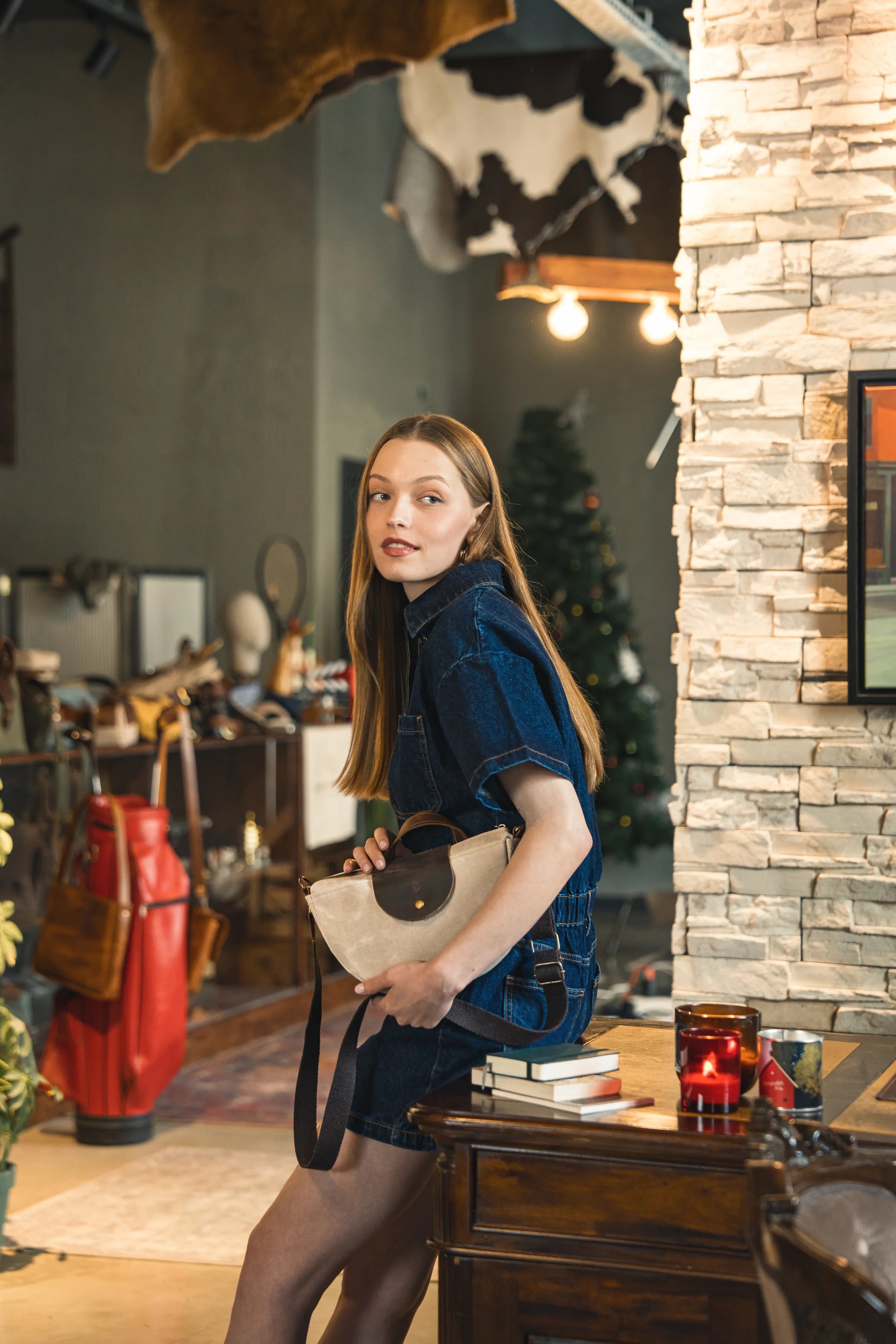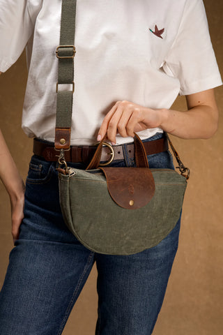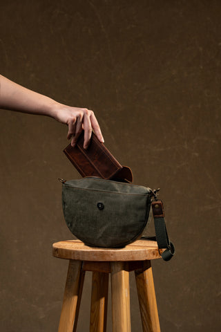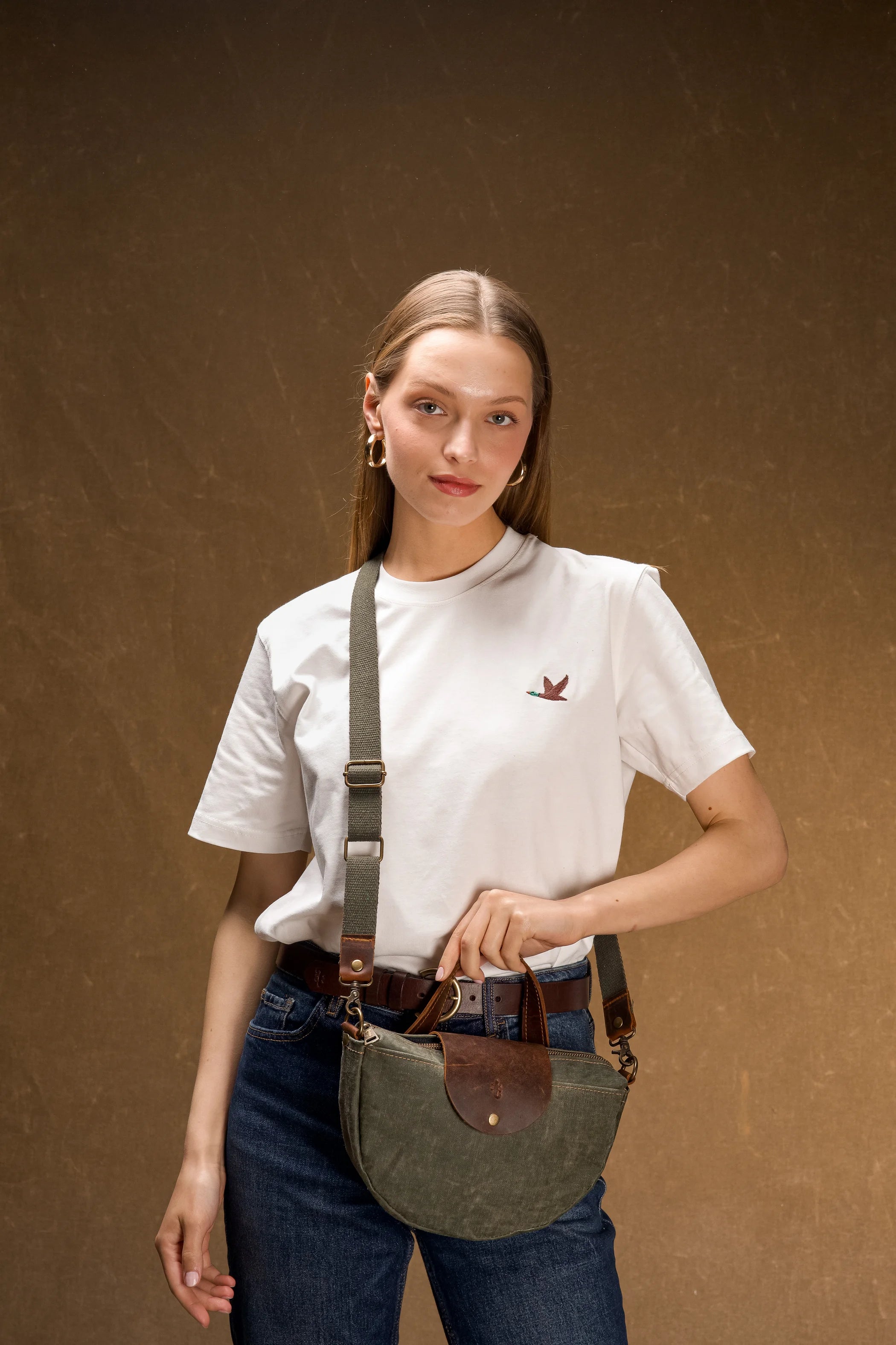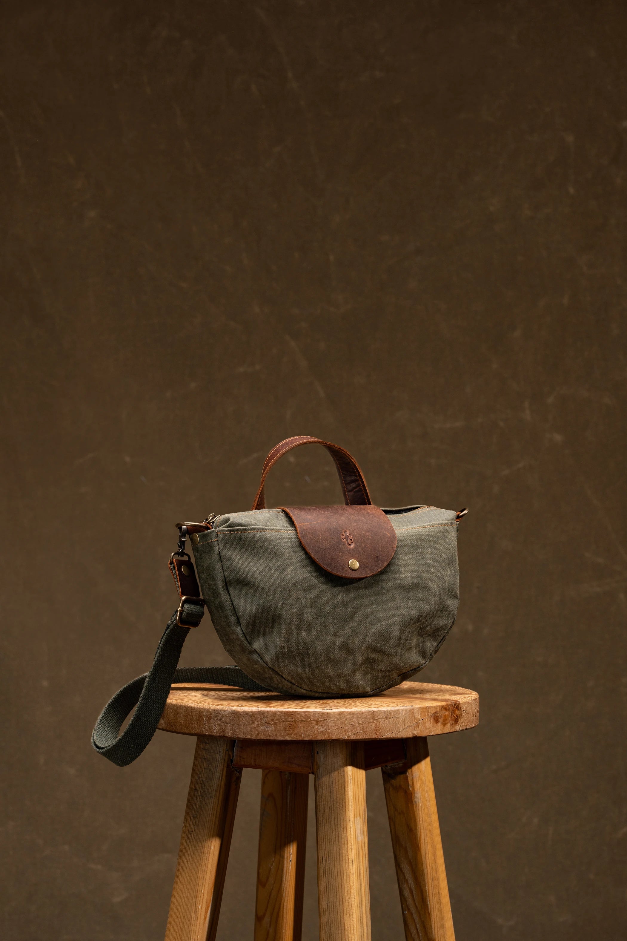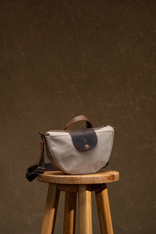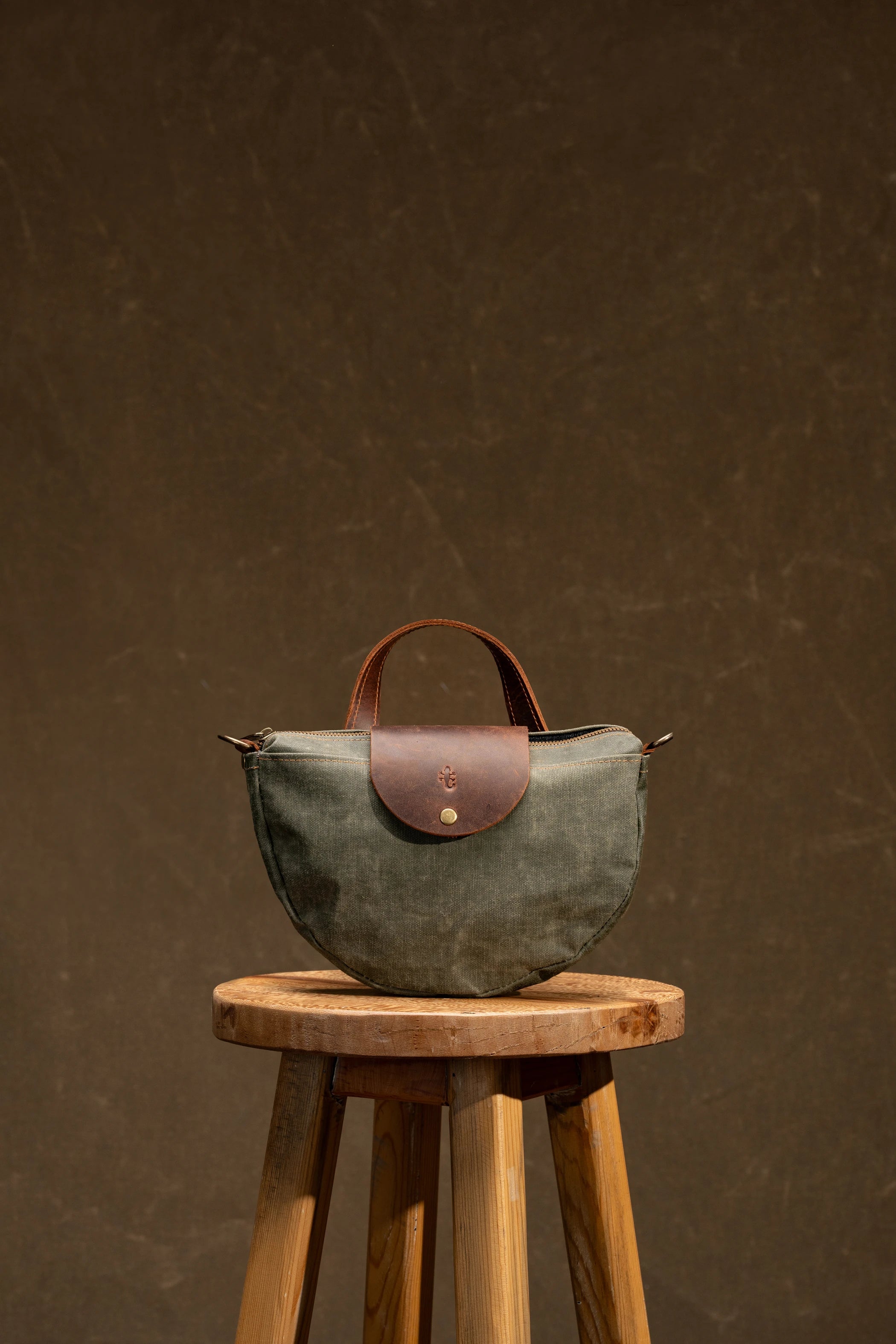 Moonbag, adını şekliyle olduğu kadar zarafetiyle de yansıtıyor. Kadın çanta kategorisinde öne çıkan bu model, mumlu kanvas yapısı ve ayarlanabilir omuz askısıyla hem şık hem fonksiyonel bir seçim sunar. El çantası, omuz çantası veya bel çantası olarak çok yönlü kullanım imkânı sağlar.